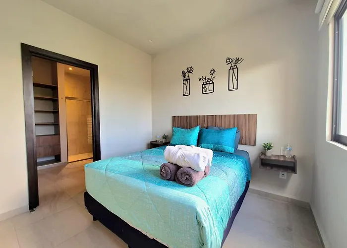 Located 4.1 km from Centro Maya, the spacious 100 m² Departamento Con Piscina, En Zona Tranquila, A 12 Minutos De La Playa! Apartment Playa del Carmen is about a 10-minute drive from a top family-friendly place like the Aquarium Beach. The 2-bedroom apartment has a terrace with views of the pool.